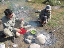 中秋夜,明月当空;后河里,寒气逼人;篝火旁,欢声笑语。