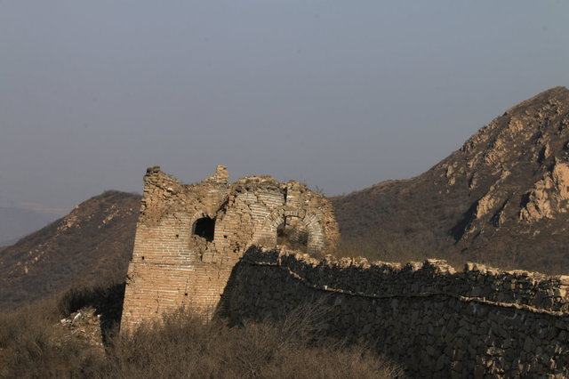本周徒步路线中的长城通常被称为黄台子长城,为西南-东北走向,连续石砌墙体,临近高楼部分修缮过,但是其余三分之二依然是原生态的。沿线分布有十几座敌楼,大多损毁,只个别外观依然完好,内部和顶部基本坍塌。