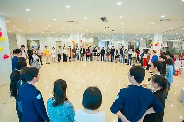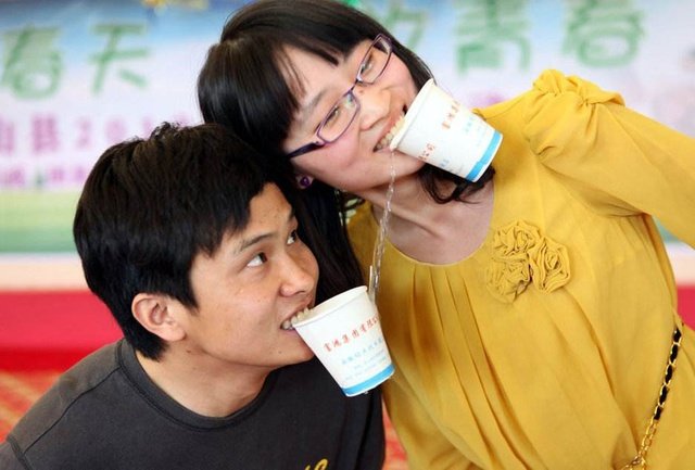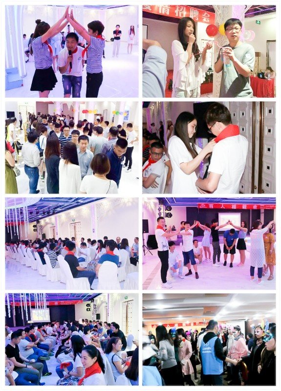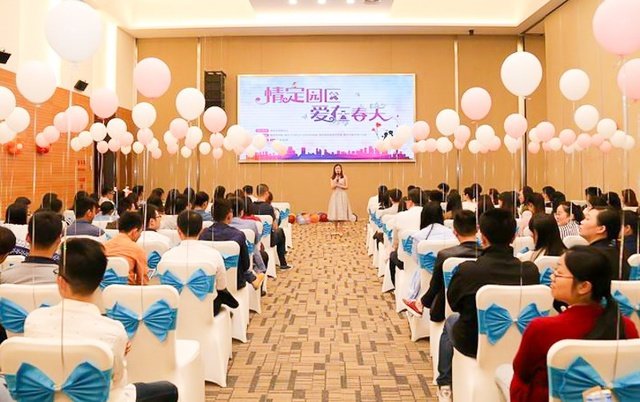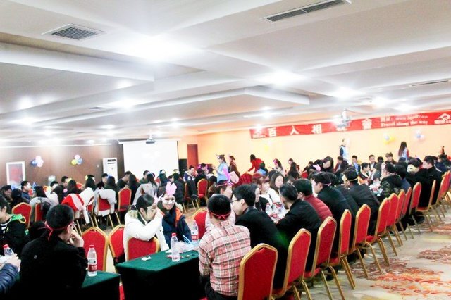 这次活动有几百位单身男女相聚在这里……