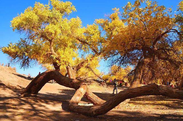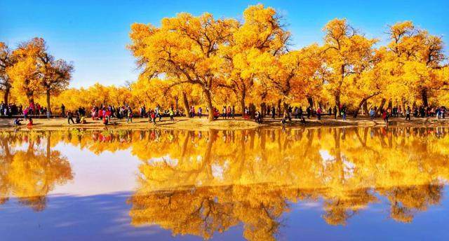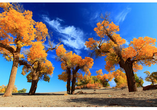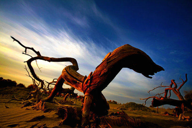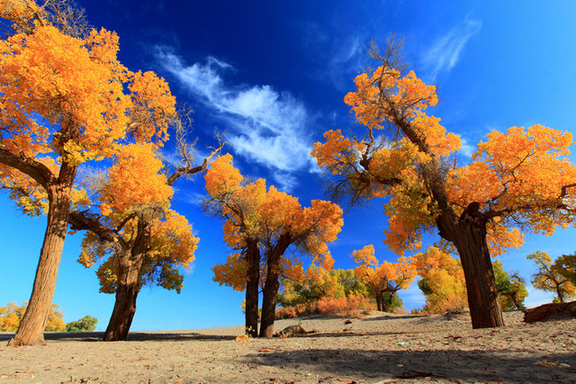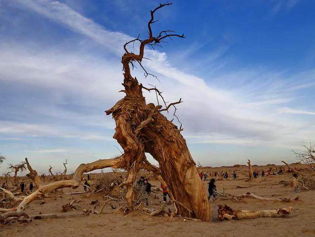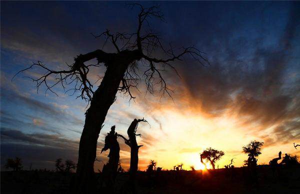 额济纳的胡杨林因其短暂的美令游人着迷。仅在每年十月初的几天,胡杨林向世人展现其金色的闪耀的美。“活着三千年不死、死后三千年不倒、倒后三千年不朽” 它是大自然宝贵的物种,它的命运激发了太多的诗情与哲思。每个人置身胡杨林中都会听到属于自己的故事,苍茫的、悠远的,神秘的、动人的……