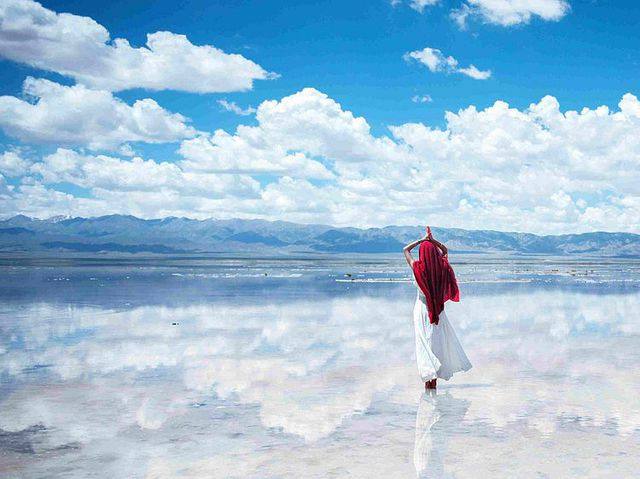 茶卡盐湖被旅行者们称为中国"天空之镜",与塔尔寺、青海湖、孟达天池并称为"青海四大景",被国家旅游地理杂志评为"人一生必去的55个地方"之一。盐湖的形成是由于灾难或地壳运动,茶卡盐湖曾经是一个外流湖,向东流入共和盆地,注入黄河。10~13万年左右发生了构造隆起,使得茶卡盐湖变成了内陆湖。盐湖如天空之镜,被称为“中国的玻利维亚”,赤脚走到湖面上观看和拍摄自己的倒影,绝美。