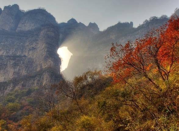 蚕姑庙下有一山峰,上有一天然石洞,状如手掌,名曰南天门。