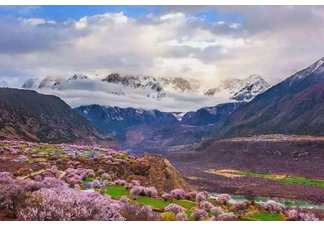 江南没有雪山,瑞士没有桃花,或许只有在林芝,才能尽享桃花掩映下的雪山之景。