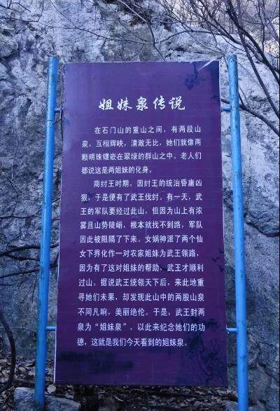 奇石、圣水、密林、幽谷,形成景区四大特色自然景观;一路凤鸣瀑、青鸟石、骆驼峰、憩仙台、问天石、广善寺、百岁廊、讲经台、石刻心经、姐妹泉、比翼鸟、情人坡、石门洞等景点相伴,天地造化、鬼斧神工,这些景点更因附会了一段忠贞不渝、凄婉动人的爱情故事、一个广为流传、感天动地的孝道传说而有了灵魂,有了感动。
