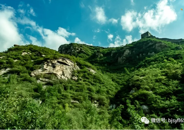 当站在山顶,环顾四周,展现在眼前的竟是青龙在卧,可沿登山步道到景区最高峰玉皇台游览,沿途可欣赏明代古长城且两侧山脉蜿蜒曲折,山势雄伟,植被茂密,原始古貌的万里长城犹如巨龙环卧在奇峰峻岭之颠,幽深的山涧峡谷,山花绚烂,碧水潺潺。