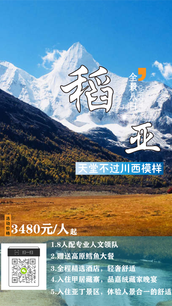 集合日为自由活动,不是正式的行程,请在自由活动时注意人身财产安全。到集合酒店报“全景稻亚“+姓名”拿房,房费已付,押金自付,活动报名截止后,我们才开始预定房间。一般在出发前3天,我们会将酒店信息发送到您的手机。
