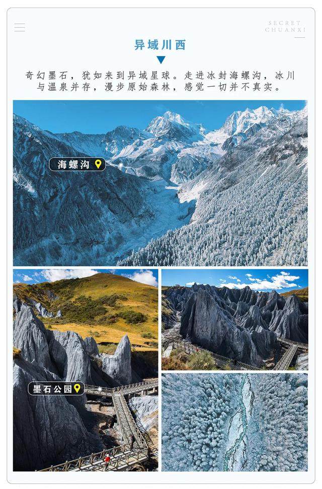 1、莫斯卡由三座神山守护,由于其地理位置的特殊性使它成为了川内为数不多的净土。其中涵盖:雪山、草原、森林、冰河、海子等川内特有的地理资源。