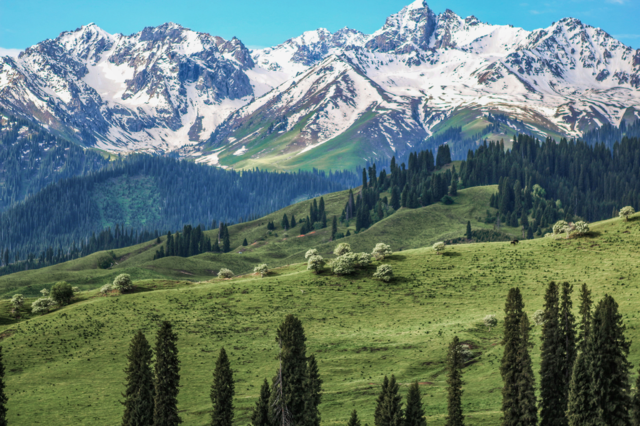 塞外江南在伊犁,伊犁最秀是恰西。这里作为避暑胜地,尤为幽静美丽;皑皑雪山,茂盛的树林,潺潺的流水,碧绿的草场,芬香的野花,夏季在这里都化作了一抹绿色的透心凉。