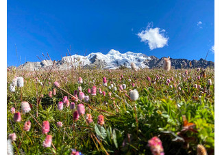 早餐后离开然日卡村,前往格聂之眼,爬个小坡之后便到达格聂之眼,这里不仅能够看到形似眼睛海子,能近距离观赏格聂、肖扎等一众雪山,以及脚下的一片花海。离开格聂之眼便开启我们的徒步之旅,向着格聂雪山主峰一路前行,全程都在开阔的草原上徒步,美景随处可见。下午时分我们到达格聂东南坡下的一个观景台,这里不仅能够观赏到美丽的格聂雪山,还能看到肖扎河谷的美景。之后哟路下坡,徒步2小时左右到达冷达营地。