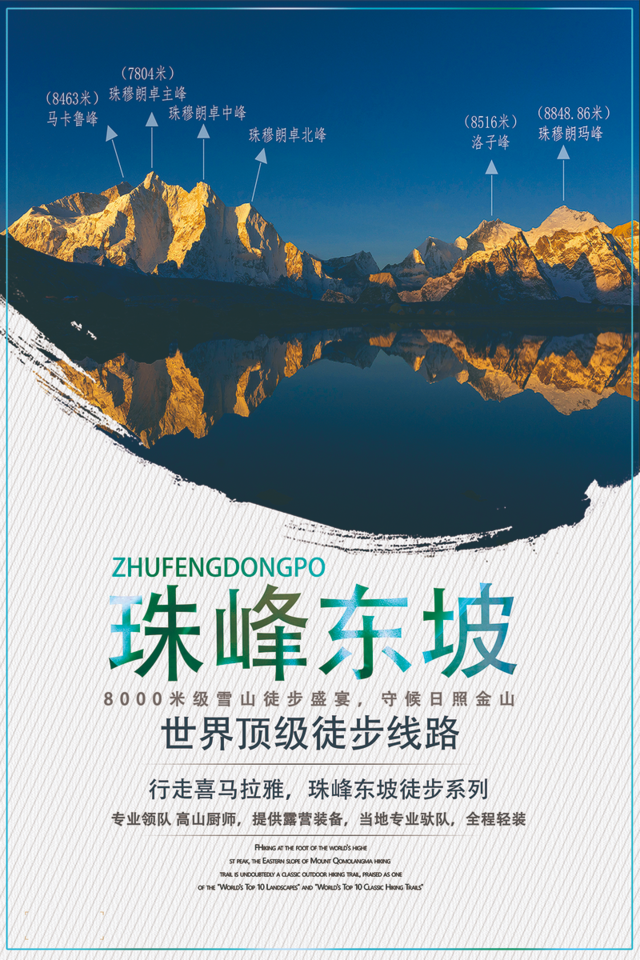 【线路介绍】 在世界最高峰下徒步,珠峰东坡徒步路线毫无疑问是一条经典的户外徒步线路,被誉为“世界十大景观”之一、“世界十大经典徒步线路”之一。每年都有一些国外的摄影师和驴友想尽办法办手续都要到珠峰东坡来徒步拍摄。沿途可以欣赏到众多六、七千米的雪山,同时可以欣赏到珠峰(世界第一)、洛子峰(世界第四)、马卡鲁峰(世界第五)。这个地区的特点主要是海拔高(平均海拔在4000m以上),雪山融水形成湖泊众多,天气好时能近距离欣赏雪山的震撼之美。珠峰东坡线路上人迹罕至,生态原始,水源丰富,珍稀动植物时有所见,星星点点的高山湖泊如宝石般散布,加之嘎玛沟沟谷幽深,景色非常之迷人。除了嘎玛沟之外,我们还要经过兰花谷、穷卓谷,夏季是观赏高山杜鹃的绝佳之地,秋天则是户外摄影的不二之选。 我们的活动安排13天,其中车程3-4天,徒步8-9天,每天5~8小时,大约9~15公里,中上难度,有一定高海拔徒步露营经验者都可完成。5月6月初和9月底最佳,7月8月为雨季,山峰经常被云雾所遮挡,但难得的云海景观这时候才有,5月底6月初除了观看壮美的雪山也是观赏高山杜鹃盛开的季节,9月底雨季过了,天气清澈透蓝,是拍摄雪山的最佳时间。 【线路亮点】 1、这是一次世界顶级徒步圆梦之旅,这里与世隔绝,远离城市的喧嚣,珍稀野生动植物繁多,高原湖泊星罗棋布,风景非震撼两字能形容...... 2、这条带有探险性质的高海拔深度行摄线路,可以近距离欣赏我国喜马拉雅核心地带的世界第一高峰-珠峰、世界第四的洛子峰、世界第五的马卡鲁以及全景都在中国境内的第二高山峰珠穆朗卓等世界级雪山带来的震撼之美,人迹罕至,恍若梦中的香格里拉。 3、我们有一天两夜的时间在措学仁玛停留,可尽情拍摄雪山、倒影以及星空。 4、本次活动由专业户外领队+当地藏族向导全程服务。 5、本线路统一提供露营高山帐(2人一顶)+蛋槽防潮垫。提供卫星电话、急救包、急救钢瓶氧气等公用装备。 6、全程提供桌椅板凳,以及餐厅帐和炊事帐篷,每天都可以在营地坐着享受营地生活。 7、全程轻装徒步、无需负重,提供早晚丰富营地餐+营地水果、饮料,吃饱才有力气徒步。 8、全程提供户外电源,晚上提供手机,相机,无人机充电。 9、自营产品,品质保障。 行程安排 D1:拉萨集合(海拔3665米) 今天为集合日,晚上8点领队将在集合酒店给大家开行前说明会。建议提前2-3天到达拉萨适应、调整状态。提前到达的队员可以去大昭寺、八廓街、布达拉宫等市内景点逛逛。 住宿:拉萨4星级酒店标间 用餐:含晚餐欢迎晚宴 D2:拉萨-羊湖-日喀则(海拔3800米) 早上8点左右酒店集合出发,乘车前往日喀则。经羊湖,宁金抗沙雪山 ,卡若拉冰川、满拉水库、远观江孜古堡后经年楚河谷地来到后藏首府日喀则。时间允许还可以前往扎什伦布寺游玩,今天也以适应为主。 住宿:日喀则酒店标间 用餐:含早餐,中晚自理AA D3:日喀则-扎西宗-曲当乡(3700米) 酒店早饭后出发,途中翻越加乌拉垭口(5200米),在加乌拉山上能看到5座8000米以上的山峰(珠峰(第一)、洛子峰(第四)、马卡鲁峰(第五)、卓奥友峰(第六)、希夏邦马峰(第十四)。进入珠峰自然保护区,下午到达曲当乡。 住宿:曲当乡多人间 用餐:含早餐,中晚自理AA D4:曲当乡-优帕村-晓乌措(4300米) (徒步第1天)早上我们乘车前往徒步起点优帕村,从优帕村开始徒步,一路缓坡上行。飘荡在山间的云雾和刺眼的阳光,至晓乌拉垭口下的晓乌措湖畔露营。期间大约有三个比较大的爬升,整个行程用时约6个小时。晓乌错是晓乌拉垭口下的一个高山湖泊,这里天气好的情况下,可以看到马卡鲁峰和珠穆郎卓峰。 徒步数据:徒步约5小时,约10km,上升900m 住宿:帐篷露营 用餐:营地早晚餐、路粮午餐 D5:晓乌措-晓乌拉(4900米)-卓湘兰花谷(4000米) (徒步第2天)早起用餐,天气好的话我们将看到马卡鲁和珠穆郎卓的日照金山以及它们在晓乌错的倒影!此处是整个行程中观看马卡鲁峰的最佳地点之一。中午翻越晓乌拉垭口(4900米),陡坡下降到嘎玛沟的起点卓湘(4030米)山谷地带。一路感受植被的变化。下午沿谷行走,抵达营地兰花谷(兰花谷是通往珠峰东坡和嘎玛沟的分路点)。 徒步数据:徒步约7-9小时,约17km,上升350m/下降900m 住宿:帐篷露营 用餐:营地早晚餐、路粮午餐 D6:兰花谷-措朗湖-夏侬牧场-汤湘观景台(4510米) (徒步第3天)从兰花谷沿原始森林上行,植被垂直分布状态明显,到达山脊后可俯瞰嘎玛沟全貌,如果有缘更可以邂逅马卡鲁峰(8463米)。中午到达雪山怀抱的措朗湖。湖水经过一个泄水口注入嘎玛沟内,措郎山谷两端雪山相映。午后翻过一个垭口就到达了野花灿烂的夏侬牧场,然后一路都比较平坦,一直到达今天的营地汤湘观景台营地。 徒步数据:徒步约7-8小时,约14km,上升550m 住宿:帐篷露营 用餐:营地早晚餐、路粮午餐 D7:汤湘观景台-巴当-俄嘎(4690米) (徒步第4天)汤湘营地是此行中最好的拍摄点之一。早上起床,先不要着急收拾营地,太阳还没升起来,淡粉色的天空下,三座大山静静地立着。随着朝阳升过山尖,三座雪峰在朝阳的照射下反射着柔和的光芒,让人看得出神.拍摄之后出发,沿着陡峭的“之”字形山路下降到俄嘎草原的巴当,下降过程中右侧出现的山谷和冰川河床就是嘎玛沟的上端源头,需要穿越一片乱石区,继续前行到达今天的营地俄嘎,好好休息为了明天一天的艰苦