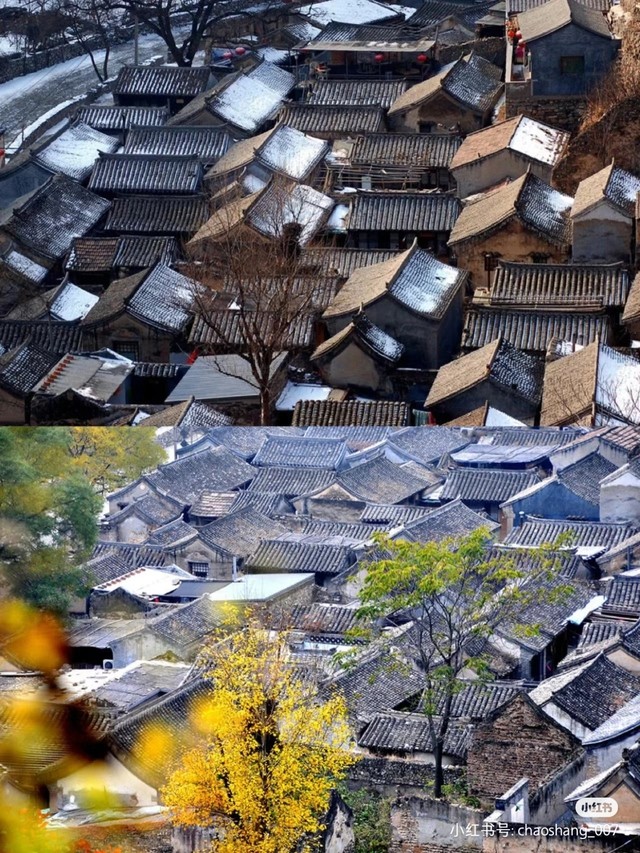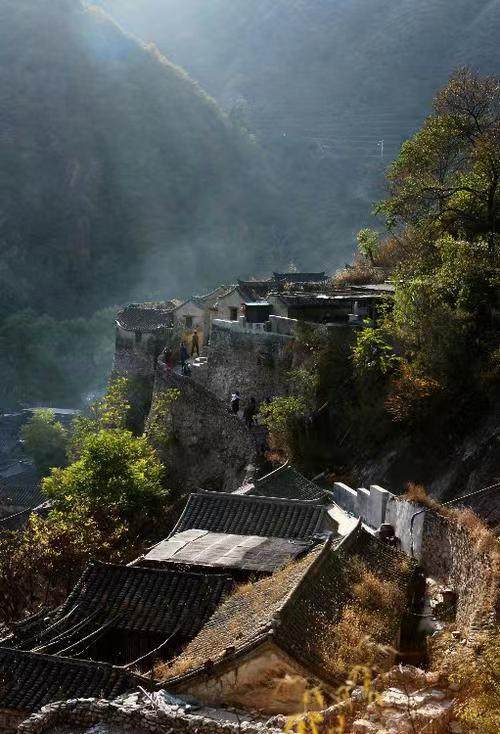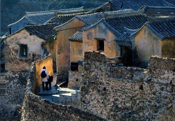 村依山而建,依势而就,高低错落。以村的后龙头为圆心,南北为轴线,整个村庄呈扇面形展于两侧。现存有