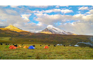 早餐后离开然日卡村,前往格聂之眼,爬个小坡之后便到达格聂之眼,这里不仅能够看到形似眼睛海子,能近距离观赏格聂、肖扎等一众雪山,以及脚下的一片花海。离开格聂之眼便开启我们的徒步之旅,向着格聂雪山主峰一路前行,全程都在开阔的草原上徒步,美景随处可见。下午时分我们到达格聂东南坡下的一个观景台,这里不仅能够观赏到美丽的格聂雪山,还能看到肖扎河谷的美景。之后哟路下坡,徒步2小时左右到达冷达营地。