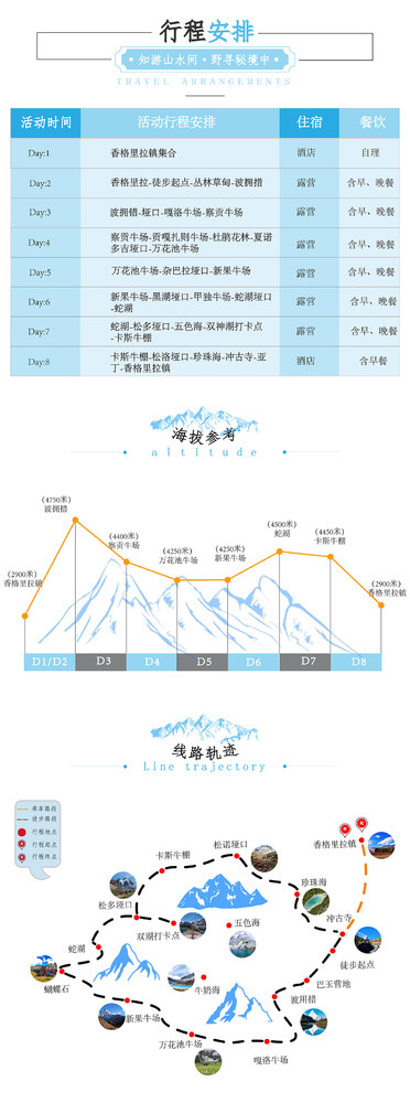 备注:改达湖和娘措为备选线路,领队会根据时间决定是否前往,队员需服从领队安排。