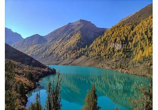 早餐后出发,坐车前往卡卡沟口,8:30左右在卡卡沟口与马帮会合,开始徒步,沿路进入沟内,逆流而上,开始是高原草甸型牧场,而后慢慢是原始杂木树林,夏天葱葱茏茏,秋天是红叶满山。再往里是狭窄的沟壑,四面山峰耸立,悬崖峭壁,有流沙飞石。我们下午4点左右到达营地,是在长海上面的一处避风的地方,长海子往前还有十多分种路程。长海位于卡卡沟尾部,是一条狭长型的高原湖泊,碧绿的湖水,十分宁静。湖泊上部是高山雪水融化流淌而来,湖水清澈透底,还可以看见溪水流淌而下,在湖泊里面形成的蜿蜒水道,形势像盘旋的龙。