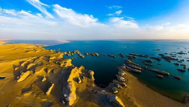 博斯腾湖的水域面积为1646平方公里,是中国最大的内陆淡水吞吐湖。博斯腾湖生态系统丰富多样,是众多珍稀鸟类的栖息地。每到候鸟迁徙的季节,成千上万的鸟儿在湖面上翱翔、嬉戏,构成了一幅生机勃勃的自然画卷。此外,博斯腾湖周边的自然风光也是美不胜收,金色的沙漠与碧绿的湖水相互映衬,形成了强烈的视觉反差。
