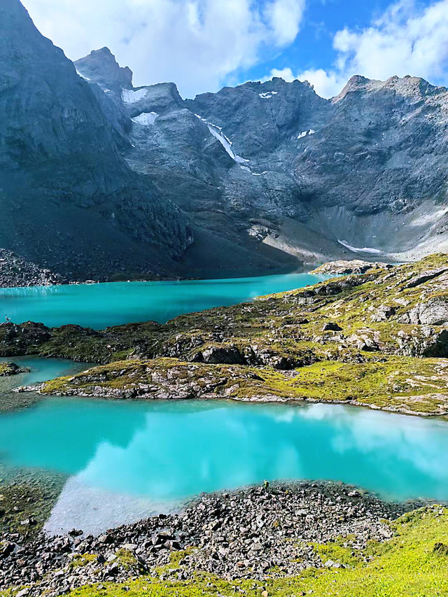 营地早餐后出发,沿着盘山路继续徒步前行,随着海拔的升高,身边的景色由树木逐渐变换为草甸,环绕的群山也露出真容,似一堵城墙阻挡前行,却能勾起我们探寻山那边未知景色的欲望,直至翻越长海垭口,映入眼帘的是子龙雪山 锅圈梁雪山及如同一块蓝宝石镶嵌在山间的长海子,在此停留拍摄后,沿着碎石坡下行到湖边长海子营地,悠闲的躺下来,等候日照金山。