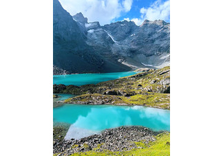 营地早餐后出发,沿着盘山路继续徒步前行,随着海拔的升高,身边的景色由树木逐渐变换为草甸,环绕的群山也露出真容,似一堵城墙阻挡前行,却能勾起我们探寻山那边未知景色的欲望,直至翻越长海垭口,映入眼帘的是子龙雪山 锅圈梁雪山及如同一块蓝宝石镶嵌在山间的长海子,在此停留拍摄后,沿着碎石坡下行到湖边长海子营地,悠闲的躺下来,等候日照金山。