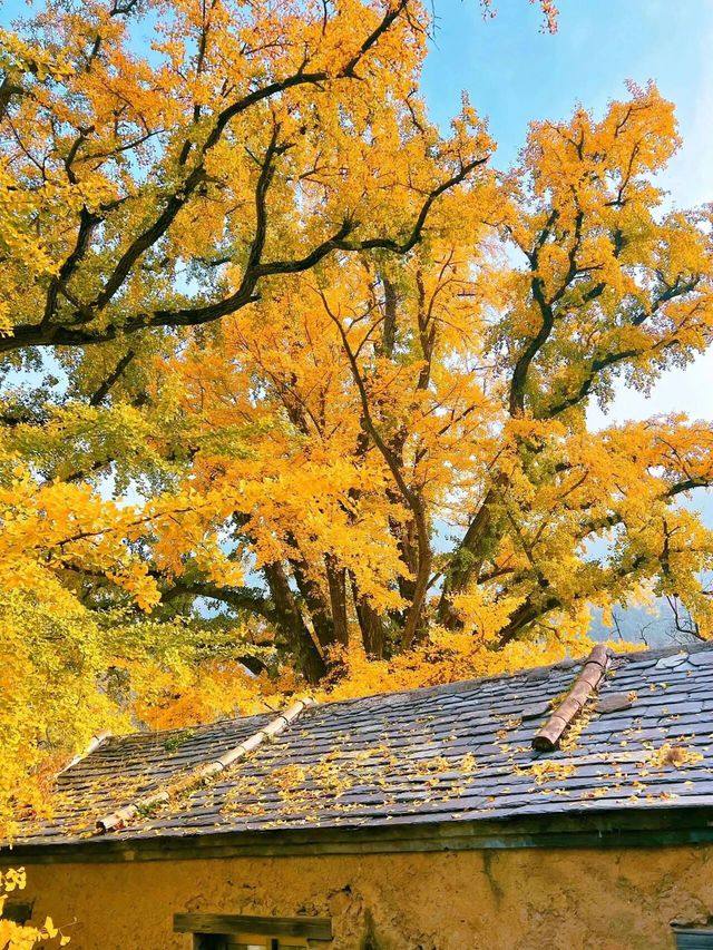 门口的三棵银杏树已有1100余年的历史,至今枝繁叶茂,每至深秋,落英缤纷、满地金黄,为京西一景,吸引着京城广大摄影爱好者云集于此