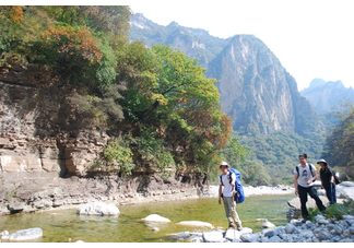 太行山把最美的一段给了河南,位于河南安阳、新乡、焦作、济源境内的南太行,仿佛是上帝的钟爱之地,得天独厚地得到了流水的滋润,好水滋润了南太行,它给南太行带来了丰富的植被和非常多的落差巨大的瀑布,正因为南太行有山有水,从而使得这里既具备了北方山的雄伟,又具备了南方山水的灵秀。山西红豆杉大峡谷为山西境内南太行的特殊峡谷,峡谷谷长约32公里,谷体深幽奇险,在20公里的谷段内拐了25道弯。气候暖温湿润,峡谷两侧生长着数万棵国家一级保护植物红豆杉树,红豆杉树的枝、叶、根、茎、果均可提取抗癌药物紫杉醇,每公斤紫杉醇价值500多万美元。同时,红豆杉大峡谷内的地质遗迹自然景观丰富多彩,主要有:地质构造形迹,溶蚀冲蚀河谷阶地剖面,寒武系和奥陶系沉积形成的地质遗迹自然景观和古生物化石等。红豆杉树具有6500多万年的生长历史,为第三纪遗存世界珍惜植物,世称“活化石”。 此段路建议全程徒步,一路景色都很美!是一条非常原始的经典徒步线路,涵盖了南太行最美的峡谷—秦家磨峡谷、南太行最古老的山村—马武寨、国家一级保护植物—北方最大的野生红豆杉群。 红豆杉大峡谷,在谷底逆流而行。