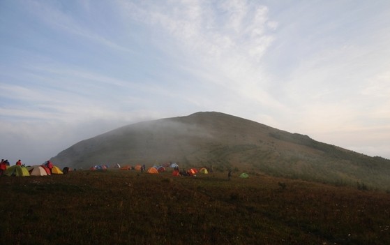 隔壁有个哥们搭了一个帐篷,四周好多石块,压得紧紧的。不知道他哪根筋不对了,想到换个地方。结果他把帐篷往下搬,石头都留在原地。四周驴友看到机不可失,一哄而上,把石头全抢光了(我也捞了一块小的)。一会那哥们回来。。。一声惨叫:我的石头呢???