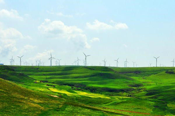 在锡林郭勒、乌兰布统、坝上草原都看不到的→_→亚洲最大规模的风车群,树立在草原每个角落....