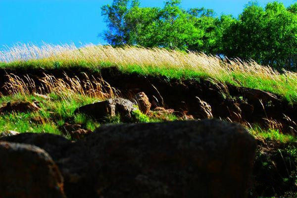 五十多平方公里的辉腾锡勒草原,土地肥沃,降雨充沛,每到五月至九月间,整个草原水草丰盛,鲜花遍野,牛羊游动,牧歌嘹亮,香风温馨,绘织成一幅美丽的草原春画。而被游人誉为“塞外江南”的黄花神葱沟,更有一番诗情画意,她集山水灵秀于一体,山势险峻,奇峰突兀,曲径通幽,鸟语花香,水流潺潺,鹰翔长空。“双驼峰”、“卧龙峰”、“佛手山”、“神龟岭”、“挂瀑崖”、“仙人洞”、“三叠泉”、“一镜天”、“木鱼台”和“神葱岩”,堪称塞外奇观。