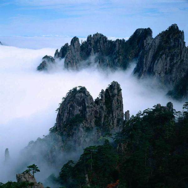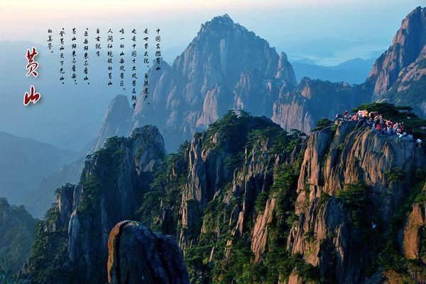 黄山:山高谷深,气候呈垂直变化,云雾多、湿度大、降水多,主峰莲花峰,海拔1867m。黄山集名山之长。泰山之雄伟,华山之险峻,衡山之烟云,庐山之瀑,雁荡山之巧石,峨眉山之秀丽,黄山无不兼而有之。明代旅行家、地理学家, 徐霞客两游黄山,赞叹说:“登黄山天下无山,观止矣!”又留“五岳归来不看山,黄山归来不看岳”的美誉。更有“天下第一奇山”之称。可以说无峰不石,无石不松,无松不奇,并以 奇松、怪石、云海、温泉 黄山四绝著称于世。其二湖,三瀑,十六泉,二十四溪相映争辉。春、夏、秋、冬四季景色各异。