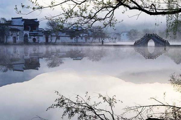 宏村数百户粉墙青瓦、鳞次栉比的古民居群,同平滑似镜的月沼和碧波荡漾的南湖,雷岗上参天古木、民居庭院中的百年牡丹与探过墙头的青藤石木,构成一个完美的艺术整体。真可谓是步步入景,处处堪画,同时也反映着悠久历史所留下的广博深邃的文化底蕴。 到达宏村时正是周末,村子内外人头涌涌,镜头所对之处尽是黑压压的人头,我们避开人潮直奔村外,两天之后才能细细地品味宏村。要感受宏村的美,早上是最佳时间,这时,小巷清幽宁静,月沼、南湖尚未被那些写生的学生所包围,拍照取景再合适不过。晨光熹微中,小山村炊烟渺渺,水面光影动人,清晨的宏村,犹如一个最美的梦……