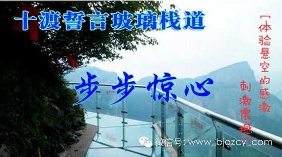 刚刚开放的十渡【誓言玻璃栈道】,玻璃栈道全长150米,落差300多米,观景台70多平,悬空刺激的体验,让您流连忘返。情侣们最喜欢的十渡位置,在这里许下爱的诺言吧!!因为刚刚开放,鲜为人知!价格超低优惠哟,比起其他的玻璃栈道超值哟!!