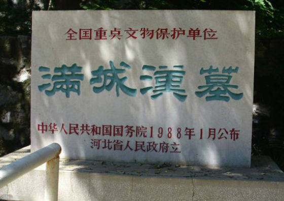满城汉墓是西汉中山靖王刘圣及其妻窦绾之墓。刘胜墓全长约52米,最宽处约38米,最高处约7米,由墓道、车马房、库房、前堂和后室组成,窦绾墓和刘胜墓的形制大体相同。两墓的墓室庞大,随葬品豪华奢侈,共出土金器、银器、铜器、铁器、玉器、石器、陶器、漆器、丝织品等遗物1万余件,其中包括"金缕玉衣"、"长信宫灯"、"错金博山炉"等著名器物。