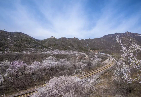 古长城是八达岭景区原生区域,未经雕琢,人迹罕至。每一个登山口都是看花海的绝佳观景点。网上把S2誉为“开往春天的列车”,我们去看看1905隧道、青龙桥老站、詹天佑的春天号。