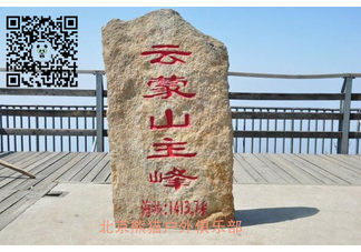 云蒙山主峰山峰美景有云蒙山主峰、霞光峰、雄风岩、鬼谷子峰等。景区主峰高达1414米。站在主峰上可观到波光粼粼的密云水库全貌,可观到连绵起伏的群山峻岭。异石"鹰嘴石"、"天狗守门"、"神龟探田"、"怀古石屋"等怪石林立。潭瀑一潭瀑,瀑布台柱,迭水轰鸣,清潭成串,碧水澄流。莲花瓣下的牛心索瀑布最大,宽约30米,一瀑三迭,总落差达86米,蔚为壮观。另外还有许多大而深的潭,如莲花潭、碧潭、虎穴潭、勺潭等。爱国洞、小西天、孙膑庙爱国洞在云蒙山国家森林公园的莲花潭东1000米悬崖上,发现抗日战争时期丰(丰宁)滦(滦平)密(密云)三县联合政府办公所在地。该洞洞深20米,洞高10米,洞口宽8米,为花岗岩壁上自然形成的洞穴。由于四周为悬崖绝壁,洞口周围树木茂密,隐蔽性很好,洞内及周围有很多保留下来的抗日战争时期遗迹。当地人称"豹子洞"。中国印"中国印"摩崖石雕高96米、宽38米,铭刻在海拔968米的云蒙山云龙涧主峰。