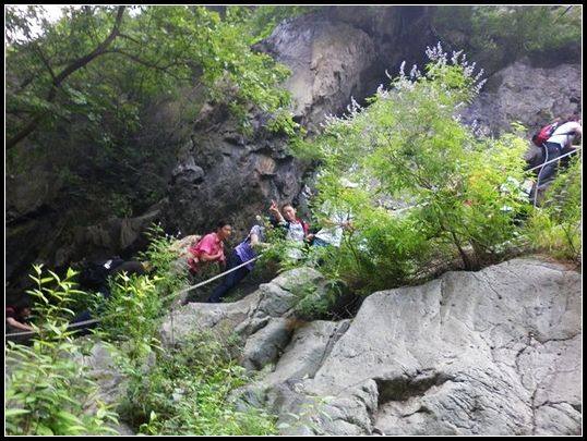 本周活动路线:王平村—瀑布1—瀑布2—瀑布3—废弃矿场—黄台港—峰口庵—蹄窝—啦啦湖—天浮桥—三店村—圈门。 路程中,有一段七、八米高的小断崖,需要攀岩,有点小挑战,但是不危险。有恐高的朋友,也可以从左边绕行。