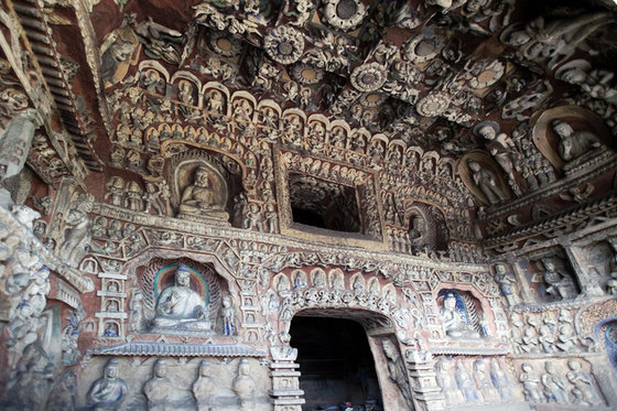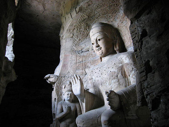 云冈石窟是我国最大的石窟之一,与敦煌莫高窟、洛阳龙门石窟和麦积山石窟并称为中国四大石窟艺术宝库。位于山西省大同市以西16公里处的武周山南麓,依山而凿,东西绵延约一公里,气势恢弘,内容丰富。现存主要洞窟45个,大小窟龛252个,造像5万1千余尊,代表了公元5至6世纪时中国杰出的佛教石窟艺术。其中的昙曜五窟,布局设计严谨统一,是中国佛教艺术第一个巅峰时期的经典杰作.