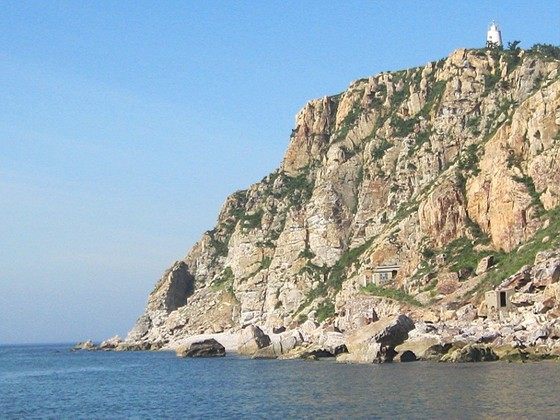 从蓬莱渡口出发,即使风平浪静,也要在海上漂3个小时才能到达砣矶岛。在轮渡途经长岛时,我们清晰地看到了九丈崖上如同蚂蚁般的人,顿时心中无限得意,暗自庆幸了一番。 3个小时过去了,海上那座缥缈的小岛终于清晰起来,岛不大,但有很多海鸟飞绕,一排排平房简单地点缀在山脚和半山腰。船一靠岸,竟然有很多小狗跑上来闻我们的裤脚,热情地大摇尾巴,看来这里因为少有人打扰,连狗都丧失了警惕的本能。