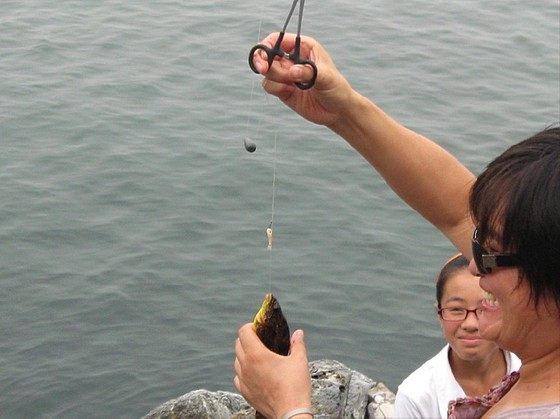 两年前,在砣矶岛上打鱼是件很容易的事。我的一位朋友告诉我,那时候他们没有地方买渔竿,就从房东家拿了一根竹竿,然后把一枚针烧弯,拴上绳子,随便从岸上捡了些臭鱼烂虾钩上,扔到海里,眨眼间就是一条大鱼上钩了,钓啊钓啊,直钓到手都发软。