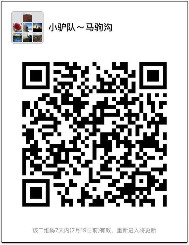 2017-07-14 17:21CMT不敢报啊,就领队自己啊回复2017-07-14 21:46张夏至的回复欢迎加群 扫描小驴队~马驹沟回复
