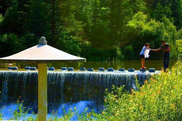 奇景五:汾河源头汾河源头是三晋人民饮水思源、寻根感恩的母亲河。汾源四周九山汇聚,溪流淙淙,亭台楼榭,风光旖旎。源头有一水塘,石壁刻有“汾源灵沼”四个大字,壁上雕有一个龙头,龙口中喷出一股清泉,流淌不绝。雷鸣寺、魁星阁挺立楼子山上,沾汾河之灵气,气象不凡。自古以来就有三晋第一胜境之美誉。