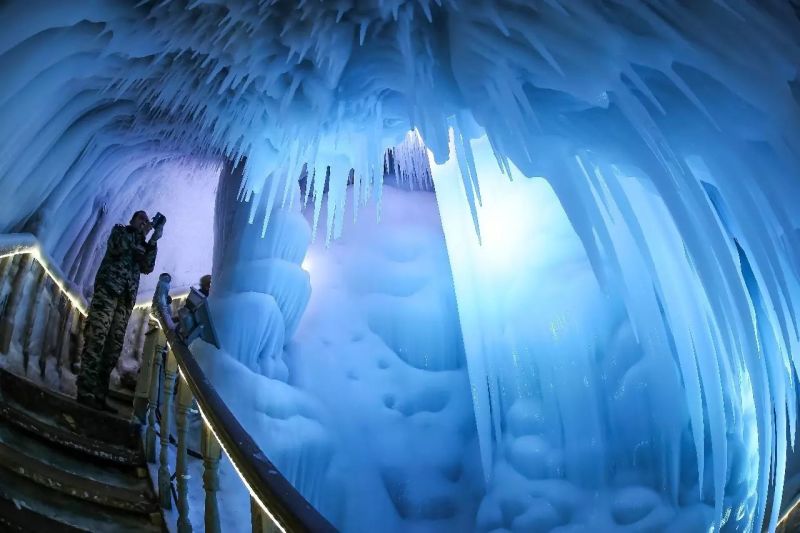 这些统统都是个谜!它的发现,已经震惊世界! 万年冰洞形成于新生代第四纪冰川期,距今已有300万年的历史。它的奇特在于以本地洞外的气候条件论,根本构不成结冰的环境,而洞内一年四季冰柱不化,愈往深处冰愈厚。它是全国迄今发现的最大的冰洞,也是世界上迄今永久冻土层以外发现的罕见的大冰洞。更使人们奇叹不已的是:与冰洞相距不到二百米处,有一处千年不熄的地火,当地人称千年火山。这一冰一火,本是相克,却奇妙地共存于同一山上,可谓世界奇观,中华一绝。