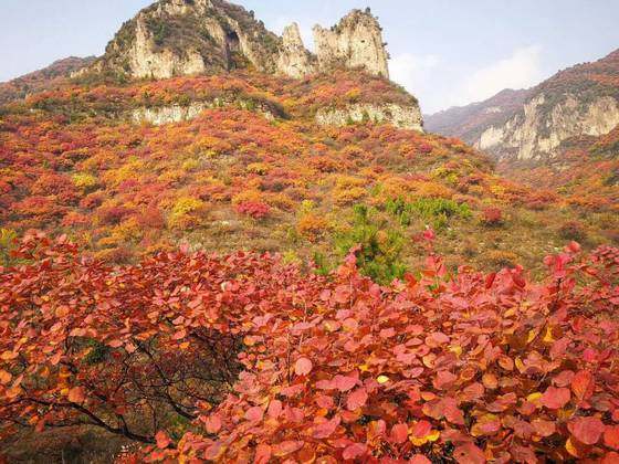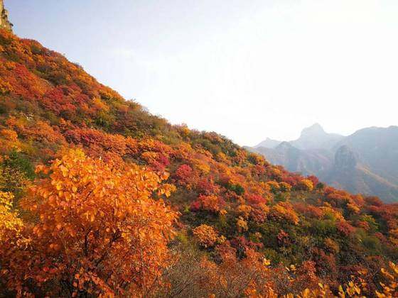 杀九坨位于河北省会石家庄市平山县西南部的碾沟村北边,和周边的天桂山、瑜伽山以及沕沕水相连接着,距离石家庄市130多公里。深秋的杀九坨迎来最美的红叶季节,也是最短暂的美景。因为石家庄的秋天太短了,秋天过后就是邀上几个小伙们出发杀九坨!即使在石家庄呆了很长时间的朋友竟然也是最近才知道的杀九坨,这里没有天桂山、湖湖水那么有名,反而深秋却是红叶胜地了,因为一这里人没那么多,二不收门票,三适合庄里人自驾游,四是这里周边有旅馆住宿方便,所以有很多都是全家人自驾车来这里玩的。秋天我觉得你们也可以带上吃的喝的,登杀九坨、赏红叶,在周边的农家乐住一晚,那将是很美好的周末!