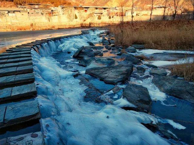 石头上也结了厚厚的冰,像舞动的裙裾,有着水流过的痕迹。