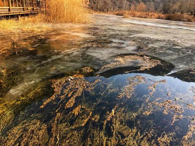 有些芦苇已和冰融为一体,成了标本一样的存在。用手去摸,指尖传来凉意,却触不到芦苇。