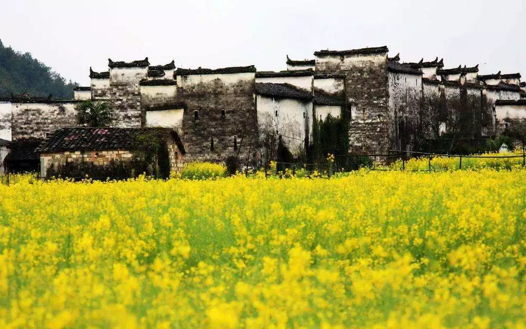 走进婺源江岭和篁岭,处处是粉红的桃花、洁白的梨花与层层金黄的梯田油菜花、白墙黛瓦的民居相辉映,构成一幅幅唯美的天然画卷。江西婺源篁岭被誉为"全球十大最美梯田"之一。