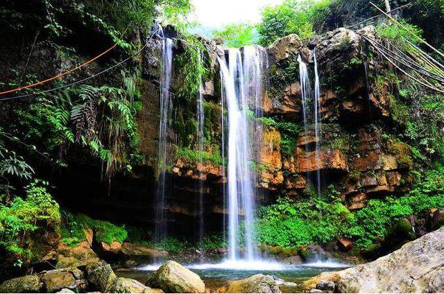 ④、清江古河床位于利川市,总长8公里有百里绝壁、瀑布、傲啸独峰、原始森林、远古村寨等景点美不胜收,堪称利川最美的户外徒步线路。