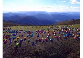 由于有大片的的高山草甸,且山顶平坦宽阔,海陀山一直是露营者的天堂,夏日周末都会有大批驴友前来搭帐篷露营,有的甚至把音响和投影仪搬 上山顶,在山顶纵情歌唱,露营必不可少的自然是涮火锅,负重等上山顶,没有什么能比一顿火锅带来的更大慰藉,吃着火锅唱着歌,一起看日出日落,星星银河!满草地的帐篷和欢歌笑语,就像哈利波特里面的魁地奇世界杯!