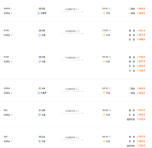(注:本着不耽误早上7:00在长春火车站统一集合的原则订票即可)
