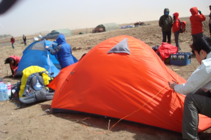 八级左右的大风考验着这群人的扎帐篷的能力,咳咳!