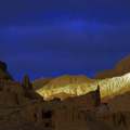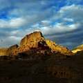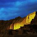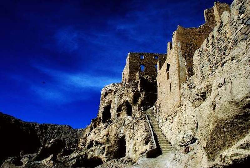 古格王朝遗址位于这片土林的边缘,象泉河谷的南侧。日落时分,寂寥的村落与大地共融一色,仿佛昭示着世界亘古如斯般平静。然而,在距今大约1100年前,同样的金色余晖中,伫立着的却是强盛一时的古格王国的辉煌宫殿和宏伟寺院。从现存的残颓遗址可以想见,当时气象之盛,场面之巨,远非眼前这般光景可比。札不让,从一个巍峨的都城到寂寂无名的小村地名的嬗变,多少令人在感叹天地造化土林之功以后,又叹世事沧桑之巨变。 在距今约1100年前,同样的余晖中,伫立着的却是强盛一时的象雄王国和古格王国的宫殿和寺院。 从现存的残颓遗址可以想象得到当时场面的巨大,远非眼前这般光景可比。在海拔4000米以上的雪域高原,古格曾经创造了奇迹,而如今这一切都消逝了,只留下了一些斑驳的遗迹和大片的黄土。古格王朝在西藏历史上具有重要意义,它是吐蕃王室后裔在吐蕃西部阿里地方建立的地方政权,其统治范围最盛时遍及阿里全境。它不仅是吐蕃世系的延续,而且使佛教在吐蕃瓦解后重新找到立足点,并由此逐渐达到全盛。古格雕塑多为金银佛教造像,其中成就最高的是被称为古格银眼的雕像。