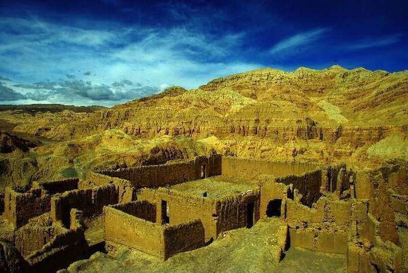 从现存的残颓遗址可以想象得到当时场面的巨大,远非眼前这般光景可比。在海拔4000米以上的雪域高原,古格曾经创造了奇迹,而如今这一切都消逝了,只留下了一些斑驳的遗迹和大片的黄土。古格王朝在西藏历史上具有重要意义,它是吐蕃王室后裔在吐蕃西部阿里地方建立的地方政权,其统治范围最盛时遍及阿里全境。它不仅是吐蕃世系的延续,而且使佛教在吐蕃瓦解后重新找到立足点,并由此逐渐达到全盛。古格雕塑多为金银佛教造像,其中成就最高的是被称为古格银眼的雕像。